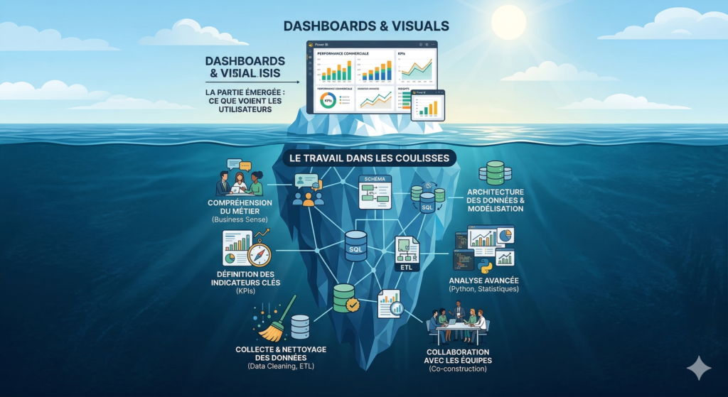 Un beau tableau de bord n’est que la pointe de l’iceberg. C’est la partie visible qui masque une réalité technique complexe et cruciale.